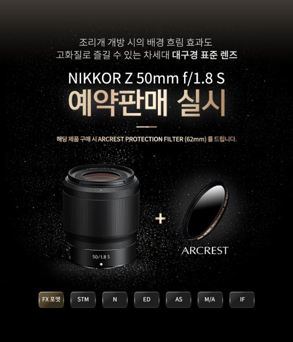 니콘이미징코리아 정해환 영업마케팅 본부장은 “NIKKOR Z 50mm f/1.8 S는 대구경인 Z 마운트의 장점을 활용한 뛰어난 묘사력과 자연스럽고 부드러운 배경 흐림 효과, 고정밀 AF 등 한층 향상된 광학 성능을 경험할 수 있는 제품”이라며 “정식 출시에 앞서 마련된 이번 특별 구매의 기회를 놓치지 않길 바란다”고 전했다.