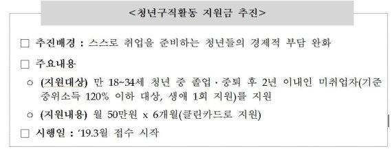 내년 졸업이후 2년 미만 청년들의 구직활동을 월 50만원씩 최대 6개월간 지원한다.