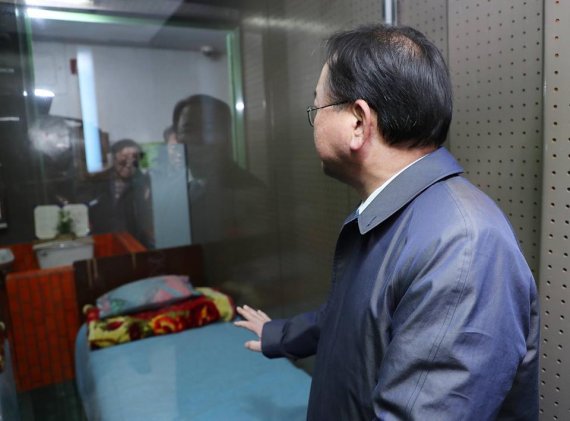 ▲김부겸 행정안전부 장관이 서울 용산구 옛 남영동 대공분실을 찾아 고 박종철 군이 고문을 당했던 509호을 바라보고 있다./사진= 김부겸 장관 페이스북