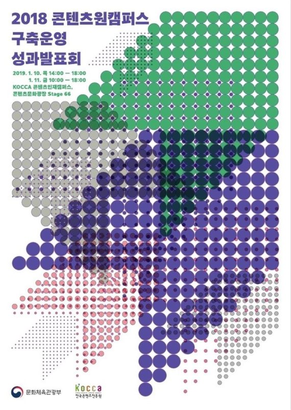 문화체육관광부가 주최하고 한국콘텐츠진흥원이 주관하는 ‘2018 콘텐츠원캠퍼스 구축운영 성과발표회’가 오는 10~11일 양일간 서울 동대문구에 위치한 콘텐츠인재캠퍼스와 콘텐츠문화광장에서 열린다.