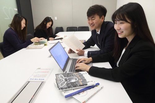 KT그룹 신입사원들이 강원도 원주 KT그룹 인력개발원에서 점자책 입력 봉사활동에 참여하고 있다. KT 제공