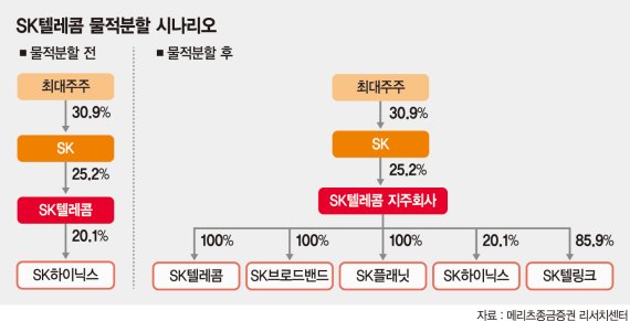SK텔레콤을 투자 지주회사와 통신회사로 분할하고, 통신회사와 SK하이닉스, SK브로드밴드, 11번가, ADT캡스 등 자회사를 투자지주회사 밑에 두는 구조다. 자회사인 SK하이닉스가 공격적인 투자에 나서기 위해서도 중간지주사 전환이 필요하다. 현재 SK하이닉스는 SK그룹의 지주사인 SK의 손자회사로서 인수합병(M&A)에 나서려면 피인수기업의 지분 100%를 인수해야 한다.