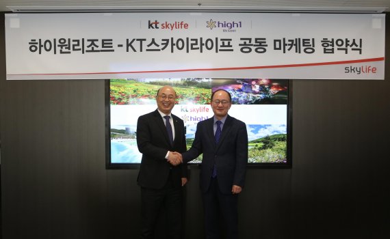 하이원리조트는 KT스카이라이프를 온라인 판매 운영대행사로 지정하고, 18일 오후 3시 서울 상암동 KT스카이라이프 본사에서 공동 마케팅 협약을 체결했다.