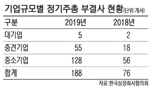 섀도보팅제 폐지 이후 처음 실시된 지난해 주총에서 이미 이 같은 부결 사태가 예상돼 당국과 유관기관이 다양한 노력을 펼쳤지만 지난해 76개사가 의결정족수 부족으로 주총 안건이 부결됐고, 올해는 2배 가까이 급증했다.