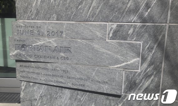 호텔 외벽 한 귀퉁이에는 준공 날짜인 2017년 6월 9일과 '소유자 조양호 대한항공 회장'이 각인된 표지석도 발견할 수 있다. 반세기 동안 '수송보국'의 일념으로 우리나라 항공 물류 산업의 새로운 장을 펼친 조양호 회장의 이름 세 글자가 아로새겨진 것이다.