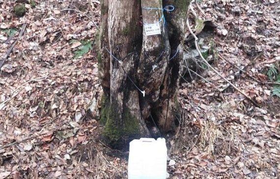 10일 춘천국유림관리소는 지난 2월 12일부터 3월 31일까지 춘천시 동면 품걸리 등 5개 마을에서 1만8853ℓ의 고로쇠 수액을 채취하였다 고 밝혔다. 사진=춘천국유림관리소 제공