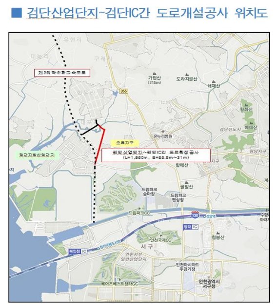 시 종합건설본부 관계자는 “검단산업단지~검단IC간 도로개설공사가 완료되면 산업단지 조기정착 및 인천 서북부 지역의 활성화가 예상된다”고 말했다.