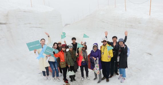 에어서울 캐빈승무원들은 5~6월에도 순백의 겨울왕국을 즐길 수 있는 일본 도야마 알펜루트의 '눈의 대 계곡 페스티벌' 기간을 맞아, 현지 일일 가이드로 나서며 여행객들에게 아름다운 설국의 비경을 소개했다.