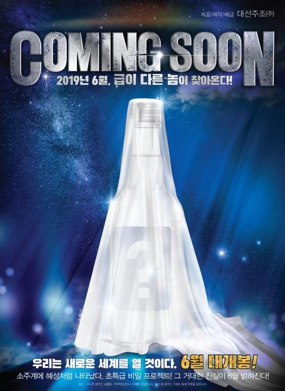 이 포스터는 베일에 싸인 제품 이미지와 물음표 마크를 내세워 신제품에 대한 궁금증을 더한다. 대선주조는 신제품의 이름, 도수, 내용물 등과 관련한 내용을 6월 중순 전면 공개할 예정이다.