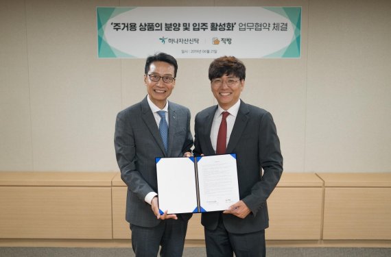 부동산 정보 플랫폼 직방은 부동산 종합자산관리회사인 하나자산신탁과 분양 및 입주 활성화를 위한 업무협약(MOU)을 체결했다.