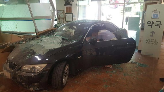 해운대경찰서에 따르면 A 씨는 병원 입구 주차장에서 1층 로비로 돌진해 로비 문을 뚫고 들어와서야 멈춰 섰다.
