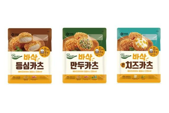 바로 바삭 카츠 시리즈는 만두카츠, 등심카츠, 콘치즈카츠 총 3종이다. 에어프라이어 전용 생빵가루를 사용해 겉은 바삭하고 속은 촉촉한 맛을 살렸다. 2~3인 가구가 한 번에 먹기 좋은 용량으로 구성했다. 180도로 예열한 에어프라이어에 넣고 8~9분간 조리하면 된다. 에어프라이어가 없을 경우, 일반 팬 조리도 가능하다.