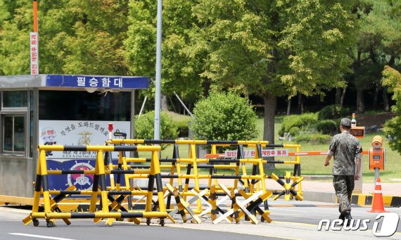 지난 4일 해군 2함대사령부 탄약창고 근처에 신분이 밝혀지지 않은 거동수상자가 침입한 사건이 발생한 뒤 내부 병사의 자백으로 종결됐으나, 허위 자백으로 밝혀져 군이 조사 중이다. 사진은 12일 오후 경기도 평택시 포승읍 해군 2함대사령부 정문의 모습.