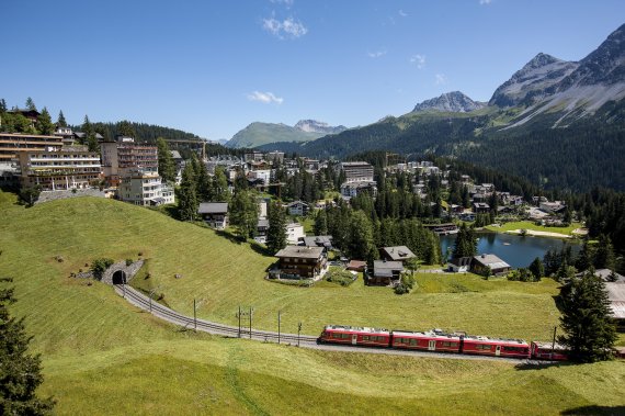 아로자는 쿠어에서 래티쉬반을 타고 도착할 수 있으며, 쿠어에서 아로자까지 이어지는 구간에서는 아름다운 절경을 보여주는 쉰파그 계곡을 따라 이어지는 파노라마를 감상할 수 있다. 특히 아로자 철도는 레이스 코스와 거의 평행을 이루며 달리기 때문에, 타이밍만 잘 맞으면 기차 안에서 레이싱을 감상할 수도 있다.