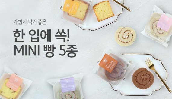 초록마을은 미니케이크 5종은 롤 3종(딸기·블루베리·초코)과 파운드(유자·아몬드)로 구성했다. 무농약 우리밀과 무항생제 유정란을 사용해 만들었다.