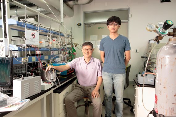 백종범(왼쪽) UNIST 에너지 및 화학공학부 교수와 펑리 중국 박사가 공동으로 수소생산에 필요한 이리듐 합성 촉매를 개발했다. UNIST 제공