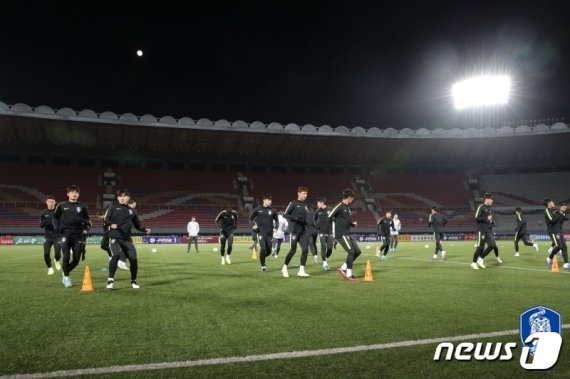 2022 FIFA 카타르월드컵 2차 예선 북한과의 경기를 앞둔 대한민국 축구 국가대표팀이 14일 평양 김일성경기장에서 훈련을 하고 있다.(대한축구협회 제공) 2019.10.14/뉴스1