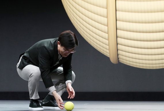 김현석 삼성전자 소비자가전(CE)부문장 대표이사 사장이 지난 6일 오후(현지시간) 미국 네바다주 라스베이거스 베네티안 호텔에서 열린 CES 2020 기조연설에서 케어 로봇 '볼리'(Ballie)를 최초 공개하고 있다.