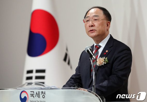 홍남기 경제부총리 겸 기획재정부 장관이 29일 정부세종2청사 국세청 대강당에서 열린 전국세무관서장 회의에서 치사를 하고 있다. /사진=뉴스1
