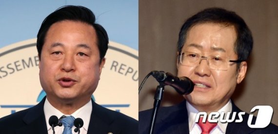 21대 총선에서 경남 양산을 맞대결이 점쳐지는 김두관 더불어민주당 의원(왼쪽)과 홍준표 전 자유한국당 대표. 김 의원은 13일 홍 전 대표 양산을 출마설에 대해 "환영한다"면서 "진주 의료원 폐쇄를 따져 묻고 싶다"고 말했다. 뉴스1