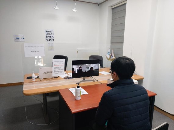 검체 채취 대상자와 직접적인 대면을 피하기 위해 기초역학조사팀과 역학조사실에 각각 고화질 카메라와 영상회의 시스템을 설치하고 화상카메라를 통해 역학조사를 진행하고 있다.
