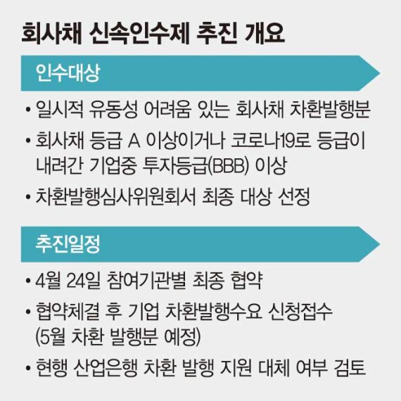 회사채 신속인수제는 코로나19로 정부가 7년만에 추진하는 것으로 총 2조2000억원 규모다.