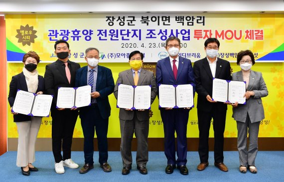 장성군은 앞서 지난 23일 군청 상황실에서 ㈜모아종합건설, ㈜인디브리움, ㈜장성백암편백버섯 등과 북이면 백암리 관광휴양전원단지 조성사업(가칭 '장성 브리움 옐로우 마운틴 빌리지')에 대한 투자양해각서(MOU)를 체결했다.