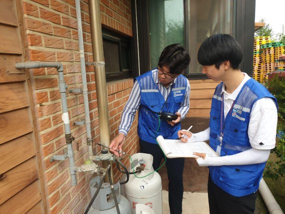 한국가스안전공사의 LP가스 안전지킴이 직원들이 설비를 점검하는 모습. 가스안전공사 제공.