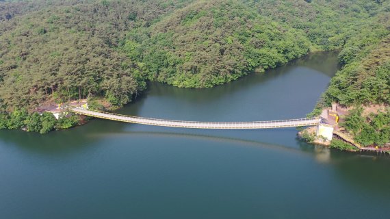 오는 6월 1일 개통하는 장성호 수변길 제2출렁다리 '황금빛 출렁다리' 전경