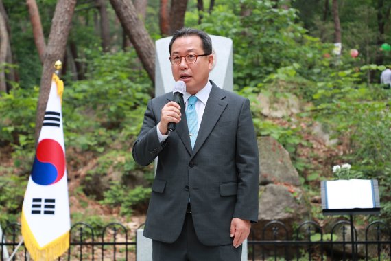 조광한 남양주시장 17일 불암산 호랑이 유격대 구국충혼비 제막 축사. 사진제공=남양주시