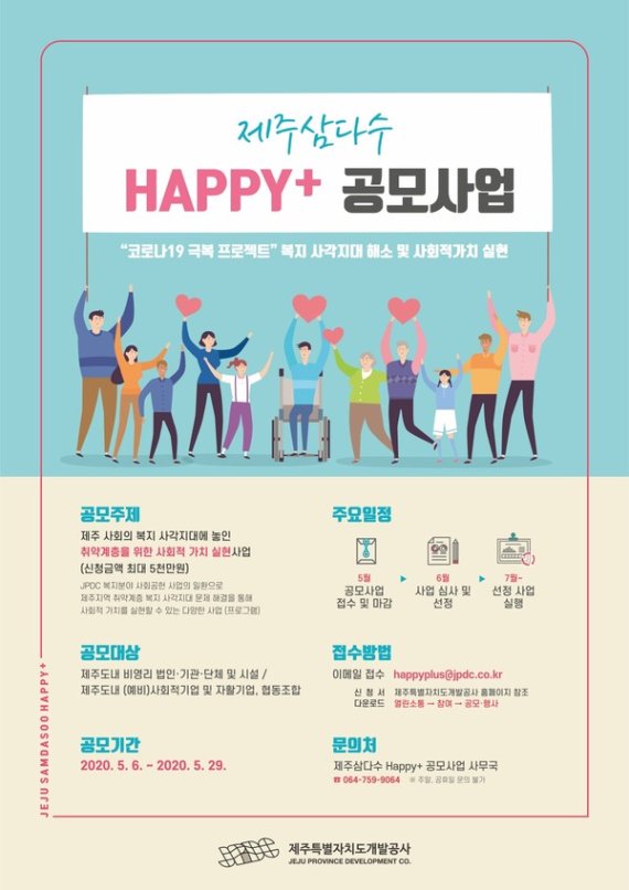제주삼다수 해피플러스 공모사업은 제주도내 복지 사각지대 문제 해결에 기여하고 도민 체감형 사회복지를 실현하기 위한 것이다.