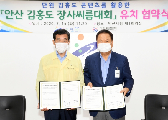 이번 협약에 따라 김홍도 장사 씨름대회는 올해부터 2022년까지 3년간 안산에서 열리며, 안산시는 대회장소 제공 등 행-재정적 지원을, 대한씨름협회는 씨름장 설치 등 대회 준비와 진행을 각각 맡는다.