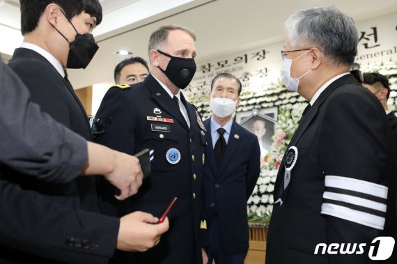 고 백선엽장군의 빈소를 찾은 로버트 에이브럼스 사령관(가운데). 뉴스1 제공