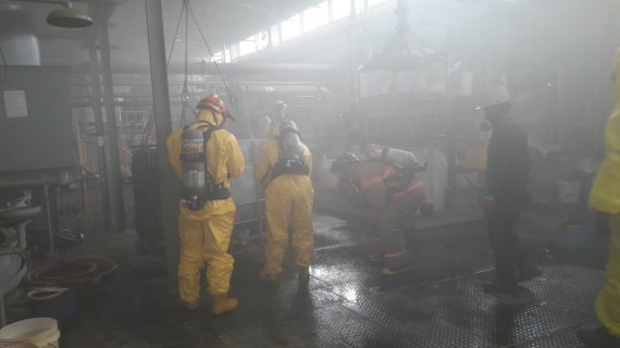 【파이낸셜뉴스 울산=최수상 기자】 29일 오전 9시 7분께 울산시 울주군 온산공단에 위치한 비봉케미칼에서 황산이 누출되는 사고가 발생했다.