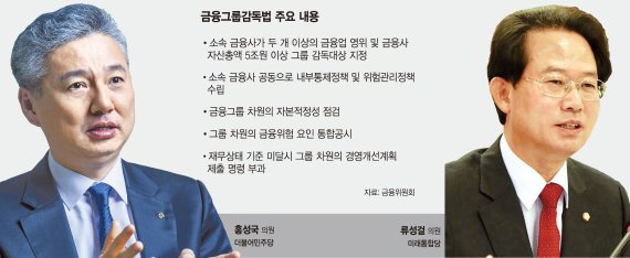 ▲류 의원=무엇보다 이중규제 문제는 논의를 거쳐야 한다. 금융회사들은 보험, 카드, 금융투자업 등 업권별로 이미 규제를 받고 있는 가운데 금융계열사를 보유한 그룹에 새로 규제를 하는 것이어서 이중규제라는 반발이 제기될 수 있다.