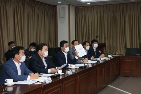 전라북도의회 문화건설안전위원회(위원장 이정린)는 한강홍수통제소에서 조명래 환경부 장관을 만나 섬진강댐과 용담댐 하류 지역 폭우피해 원인 규명 활동 및 조사 결과를 전달했다. 사진=전북도의회 제공