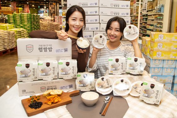모델들이 6일 서울 등촌동 홈플러스 강서점에서 PB 즉석밥 신상품 ‘홈플러스 시그니처 햅쌀밥’을 선보이고 있다.