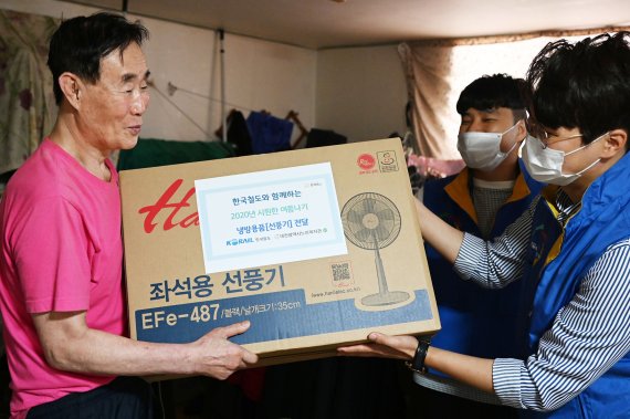 한국철도 직원들이 독거노인 350가구에 선풍기나눔활동을 펼치고 있다. 한국철도 제공