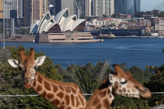 지난 6월 재개장에 들어간 호주 시드니 소재 타롱가 동물원 뒤로 시드디 오페리 하우스가 보이고 있다.로이터 뉴스1