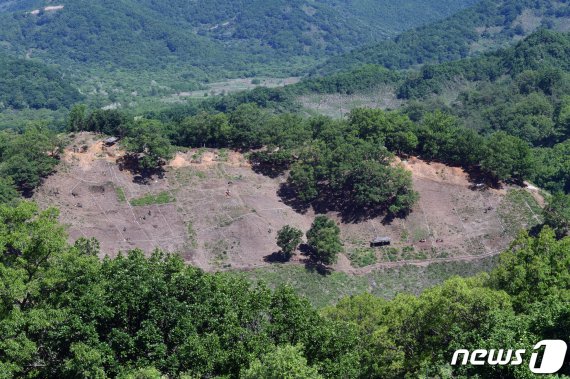 강원 철원군 민통선 내 우리 측 지역인 화살머리고지일대에서 남북공동유해발굴 T/F 장병들이 지뢰제거와 기초발굴 작업을 하고 있는 모습.2019.5.28/뉴스1 © News1 사진공동취재단 /사진=뉴스1