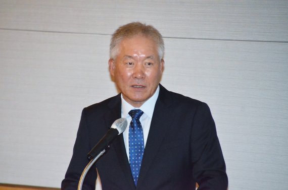 19일 서울 여의도 전국경제인연합회관 루비홀에서 진행된 입학식에서 정현식 한국프랜차이즈산업협회장이 인사말을 하고 있다.