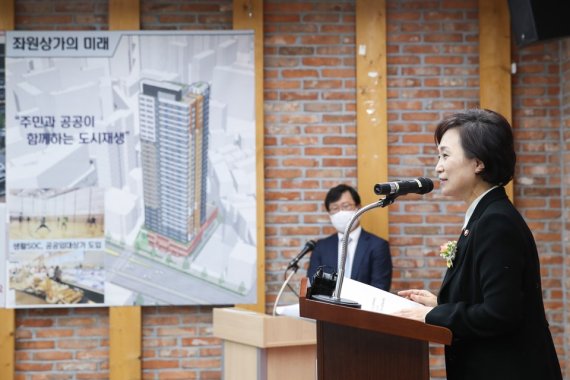 김현미 국토부 장관은 "좌원상가아파트는 도시재생사업을 통해 시민의 안전과 생업을 보장하는 동시에 지역을 되살리는 상생의 랜드마크로 거듭날 것"이라며 "앞으로 좌원상가와 같은 위험건축물 재생사업이 빠르게 확산될 수 있도록 하겠다"고 말했다.