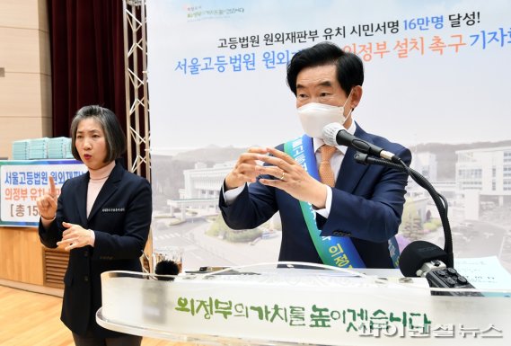 안병용 시장은 또한 “의정부시는 경기도, 경기북부지방변호사회와 함께 10일 법원행정처장에게 서울고등법원 원외재판부 의정부 유치 범시민 서명부와 유치 건의서를 전달할 예정”이라고 밝혔다.