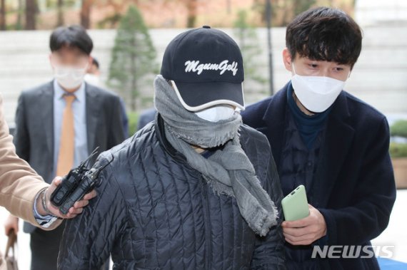 옵티머스자산운용(옵티머스) 핵심 로비스트 중 한명인 신모씨가 17일 오전 서울 서초구 서울중앙지방법원에서 열린 변호사법 위반, 배임증재, 상법 위반, 특정경제범죄 가중처벌 등에 관한 법률위반(사기) 등 혐의 관련 구속 전 피의자 심문(영장실질심사)에 출석하고 있다. /사진=뉴시스