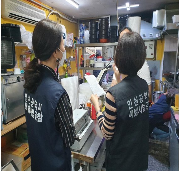 인천시 특사경이 지역 내 배달음식점을 특별단속을 벌이고 있다. 인천시 제공.