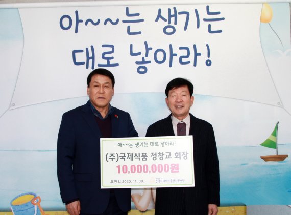 초일류 식품 가공·유통기업을 표방하고 있는 부산의 향토기업 ㈜국제식품(대표이사 회장 정창교)이 출산 장려사업에 힘을 보태기 위해 김영식세자녀출산지원재단에 출산축하금 1000만원을 쾌척했다.