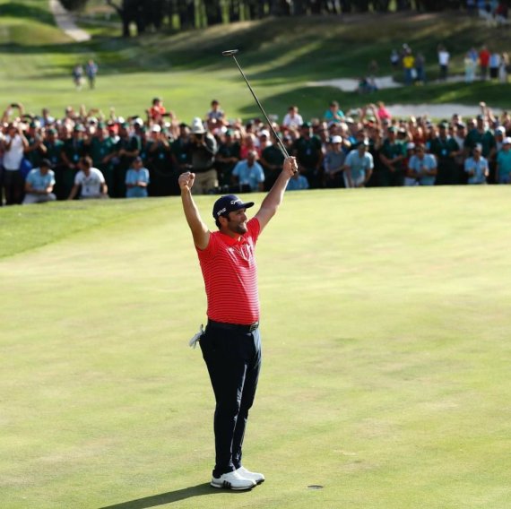 존 람이 버디 퍼트를 성공시킨 뒤 양팔을 들어 올리며 환호하고 있다. /사진=존 람 공식 페이스북