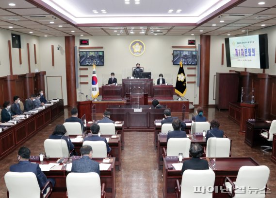 박성민 광명시의회 의장은 개회사에서 “사회적 거리두기 장기화로 지역경제가 침체의 늪에 빠져 안타깝다”며 “시의회는 여섯 차례에 걸친 추경과 소상공인 지원을 위한 조례 개정 등 활발한 의정활동을 통해 코로나19 극복에 최선을 다해왔으며 올해도 우리 일상을 회복하고 시민이 희망하는 민생 현안이 해결될 수 있도록 더욱 노력하겠다”고 말했다.