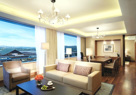 김포공항을 마주보고 있어 독보적인 공항뷰를 자랑하는 롯데시티호텔 김포공항은 슈페리어룸과 이코노미 클래스 항공권을 포함해 37만원부터 선보인다. 호텔 최상층에 위치해 탁월한 공항뷰가 돋보이는 프리미어 스위트룸 패키지는 비즈니스 클래스 항공권, 간편하게 와인을 즐기는 '와인 인 어 글래스', 사만사 타바사의 버킷백 '해피'를 포함해 110만원부터 이용이 가능하다.