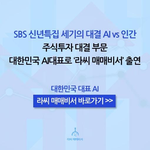 한편, 라씨 매매비서는 지난 'SBS 신년특집 세기의 대결 AI vs 인간' 프로그램에서 AI와 인간의 실전 주식 투자 대결에 대한민국 대표 주식 AI로 출연해 안정적인 투자로 전문가들에게 긍정적인 반응을 이끌어낸 바 있다.